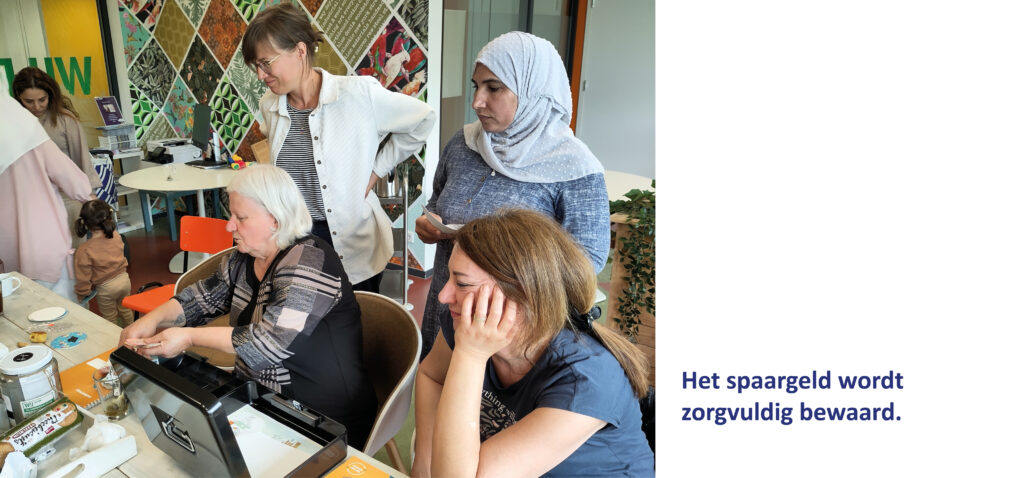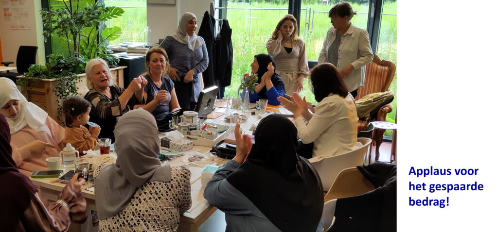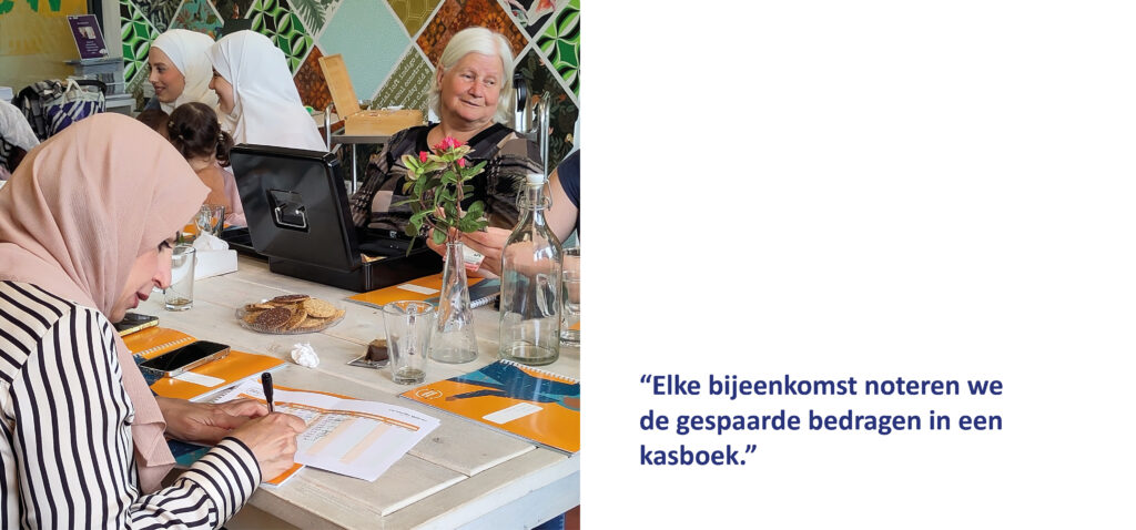 Omdat veel vrouwen vragen hadden over omgaan met geld, besloot Souna de dames aan te moedigen een spaarkring te starten. Elke twee weken op woensdagochtend komen ze nu bij elkaar, doen hun gespaarde geld in een gezamenlijke geldkist en praten over geldzaken. Tijdens de spaarsessies wordt uitsluitend Nederlands gesproken. “Dat is belangrijk,” zegt Souna. “Zo leren we woorden die met geld te maken hebben. Dat helpt ook in de supermarkt of bij een sollicitatie.”
